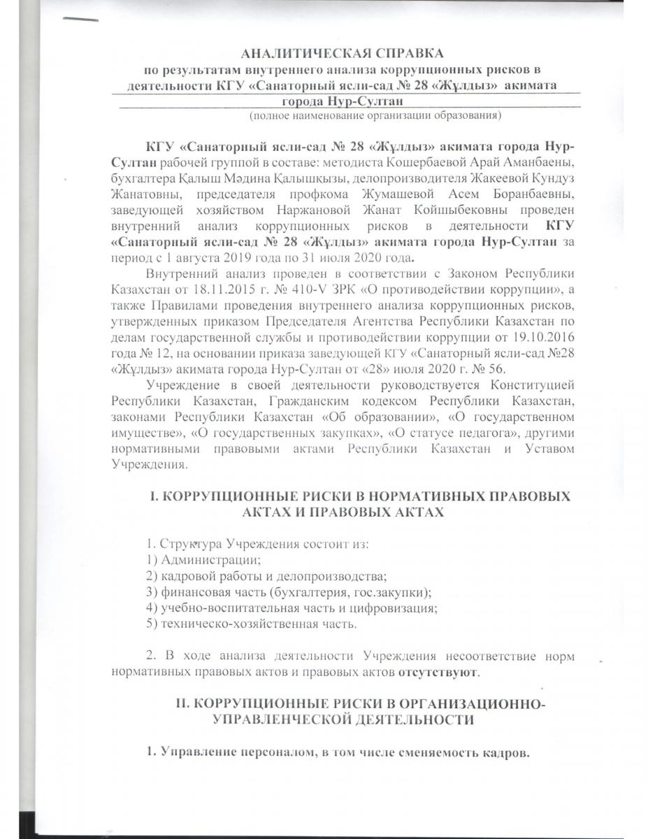 Сыбайлас жемқорлық тәуекелдеріне ішкі талдау жүргізу туралы